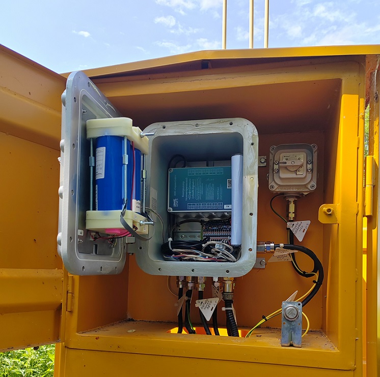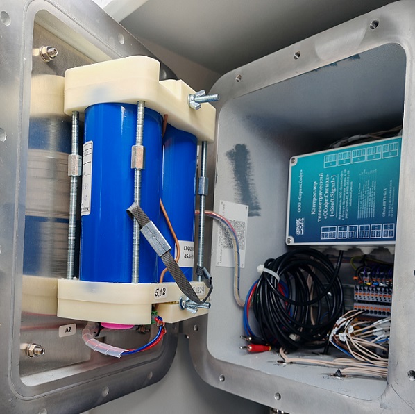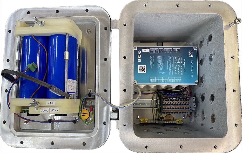 Комплекс конструктивно представляет собой взрывозащищенную коробку в которой размещен, телеметрический контроллер, АКБ на основе титаната лития и средства коммутации.